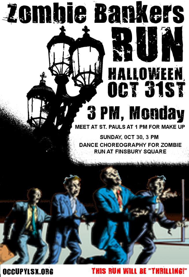 Occupy’s sense of humour appears undiminished though – a zombie bank run is planned for Monday 31st October.