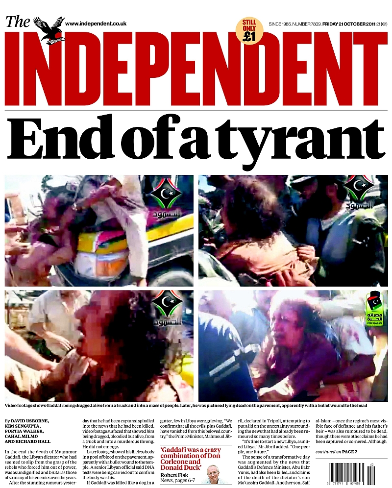 “End of a tyrant”: The Independent and The Guardian jubilant over the assassination of Libya’s deposed President Gaddafi