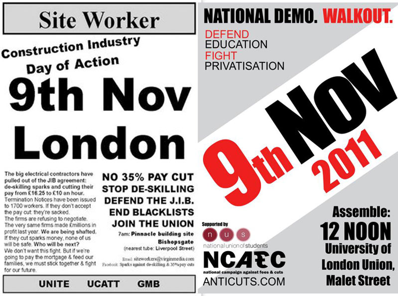 On the newswire: Sparks blockade Blackfriars station site | Siteworkers and OccupyLSX blockade Blackfriars | Latest London sparks protest | Electricians/Sparks Protest in Newcastle | Proposed Electricians Pay Cut Sparks Resistance | Manchester support the Sparks! | National Construction Industry action Nov 9th