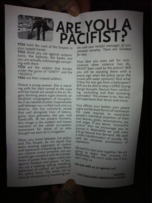 Are you a pacifist? signed, The OAKLAND LIBERATION FRONT