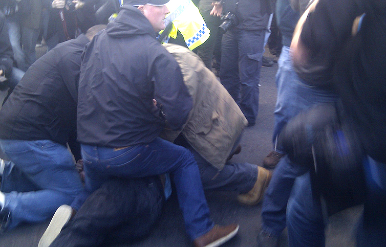 You cannot have people being snatched out of a crowd like this. You do owe yourselves a duty of solidarity and you must act to ensure that people are routinely de-arrested if they come into contact with thugs. Its very good to film them and do the video's but you also need to assert yourselves too.