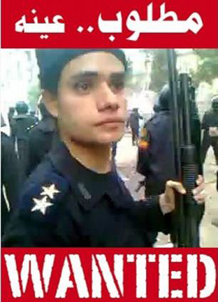 Despite PC Simon Harwood's attempts to hide his face and to conceal his identity, we all now know, and will never forget, what Simon Harwood looks like, no matter where he hides. Similarly, and in light of cop threats to maim British protestors with plastic bullets, Egyptian protesters have produced "Wanted" posters showing the face of a cop who blinded at least 5 demonstrators by aiming rubber bullets directly at their eyes, to make sure that cop never escapes justice, no matter how long it takes...