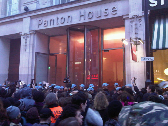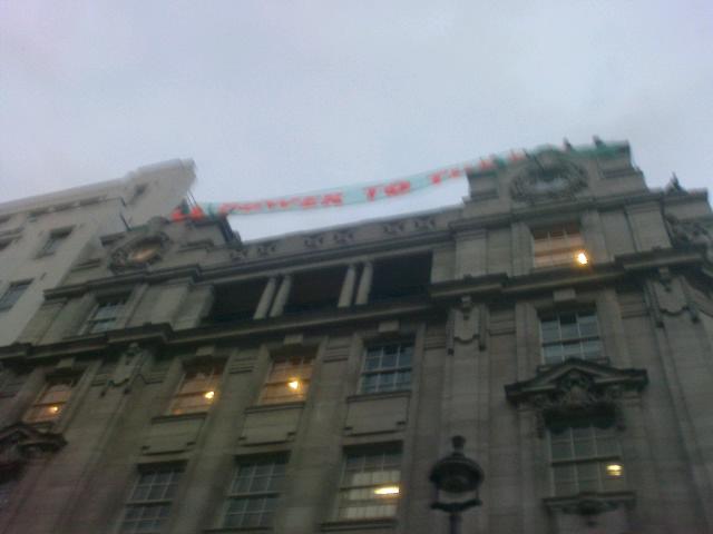 About 60 protestors gained entry into the offices of mining company Xstrata, a ‘leading light’ of the FTSE 100 and British industry to highlight the fact that CEO Mick Davies was the highest compensated CEO of all the FTSE 100 companies in the last year, when his companies had losses and the economy collapsed. He received £18,426,105 for his efforts. [1]