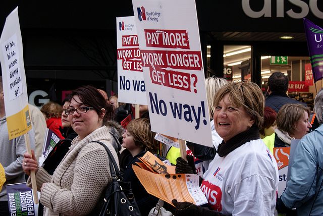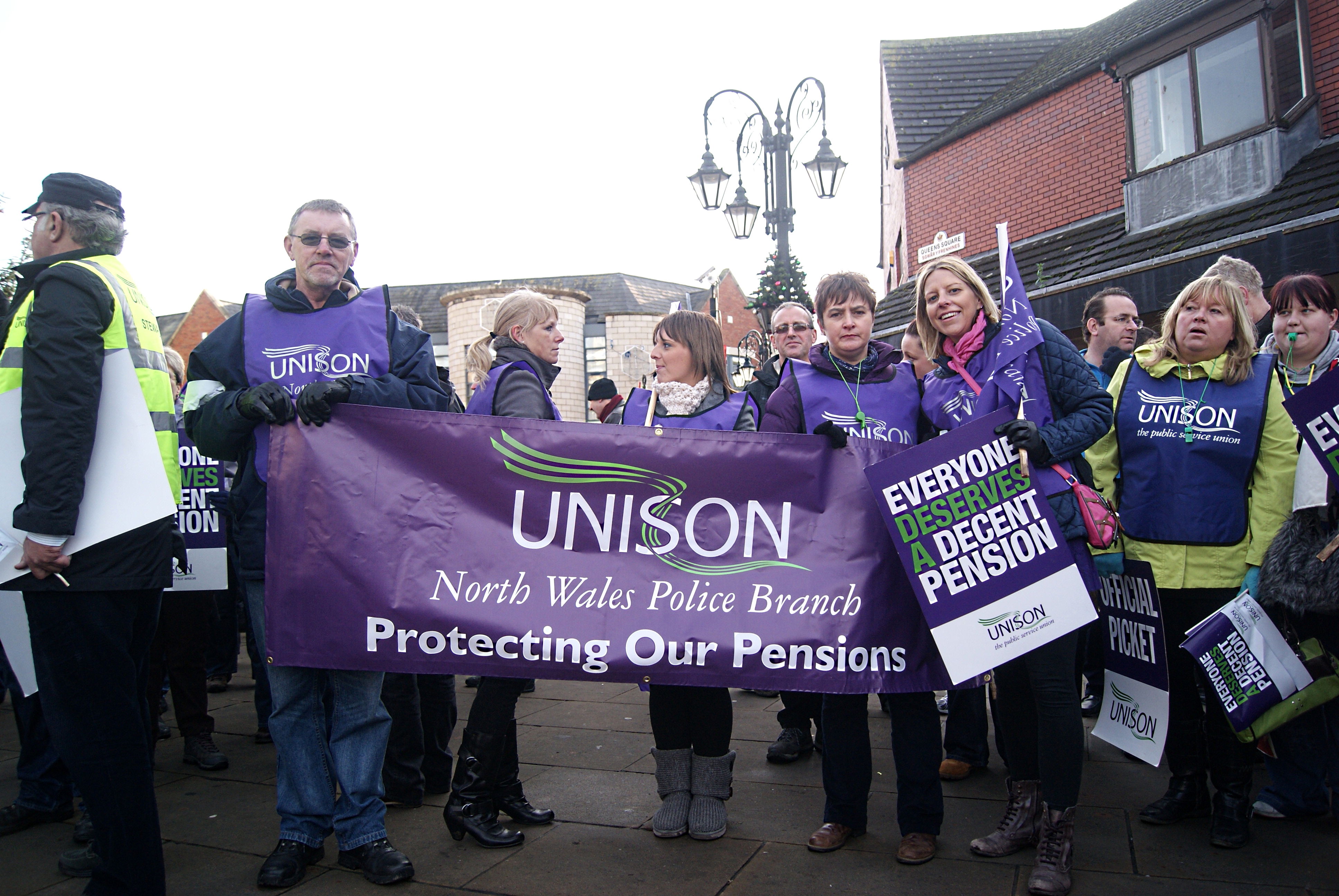 It is estimated that today 700 union members turned up to the Wrexham strikes, They were striking agaist the governments plans to cut public sector workers pensions, as one union member said to me "work longer for less the money".
