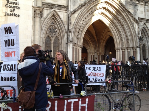 http://www.guardian.co.uk/media/2010/dec/08/wikileaks-rape-allegations-freedom-of-speech Occupy LSX, which has its own court case here today in connection with its occupation of the UBS Building 'Bank of Ideas', ran a live stream from outside the court all morning.