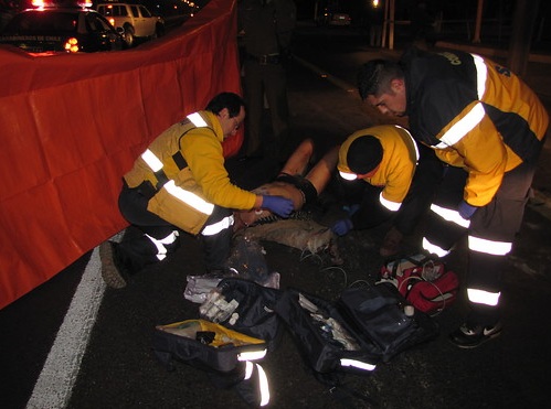 - Conspiracy Cells of Fire bomber Luciano Pitronello walking right in front of CCTV cameras in Santiago, before blowing himself up, by mistake, with a bomb he'd intended to use against a bank; being treated by paramedics from the same State he wished to destroy; and being treated in hospital..... also by the State. Luciano Pitronello stole a moped off his own brother to drive to the bank, and his accomplice - the driver - showed so much "solidarity" with his anarchist mate that he drove off as soon as the bomb exploded, leaving his injured comrade at the scene. Think carefully about how intelligent someone has to be carry out the actions shown in the first photo, and then ask yourself whether the same level of intelligence might also have "informed" this guy's political beliefs?