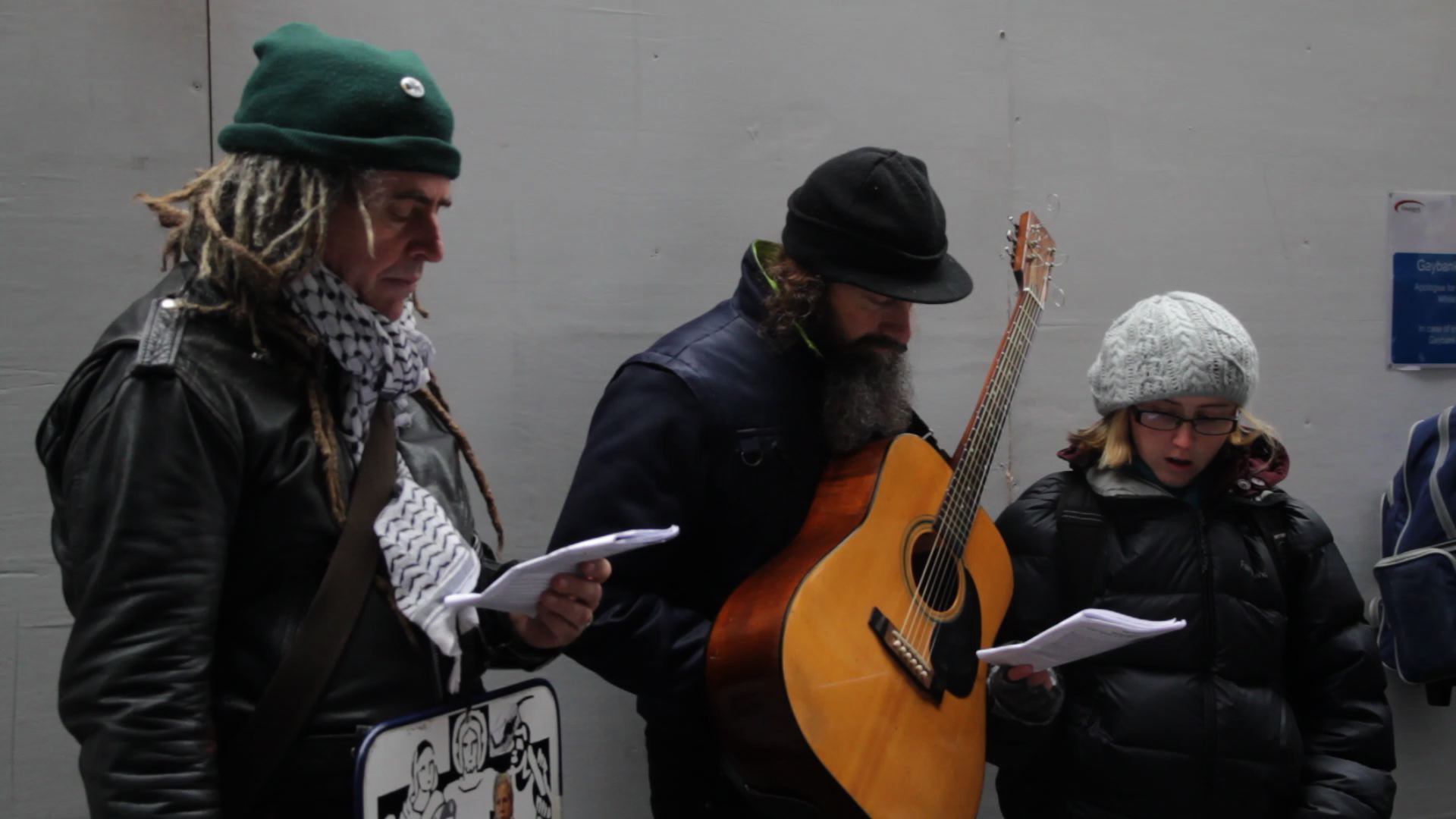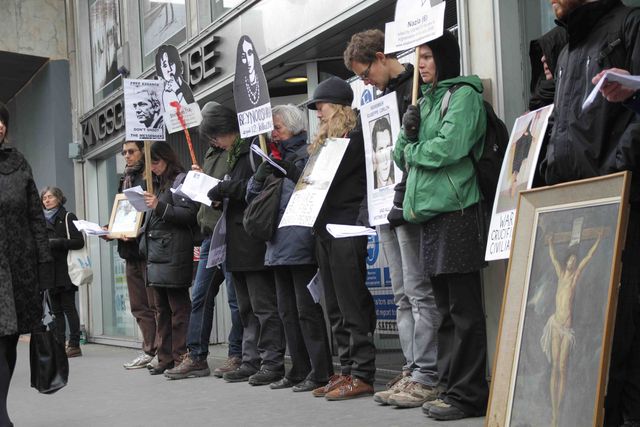 http://tinyurl.com/cf5wk6w 27 people associated with the Catholic Worker communities based in Harringay, Rickmansworth and Oxford, undertoook a five hour contemporary Stations of the Cross procession through downtown Westminster/ London on Holy Thursday.