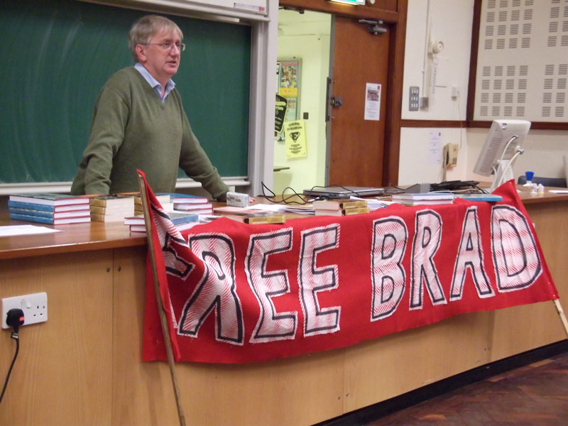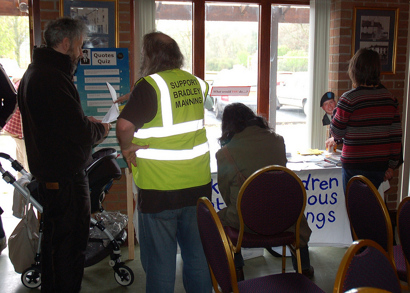 Ben Griffin (ex-SAS and whistleblower) and Ciaron O’Reilly (ex-prisoner of the US and long time anti-war activist) spoke on the subject ‘War in the 21st Century’, putting Bradley Manning’s situation, the WikiLeaks releases and the state and anti-war responses to both into context; a similar talk by Ben and Ciaron took place on Saturday near Newport.