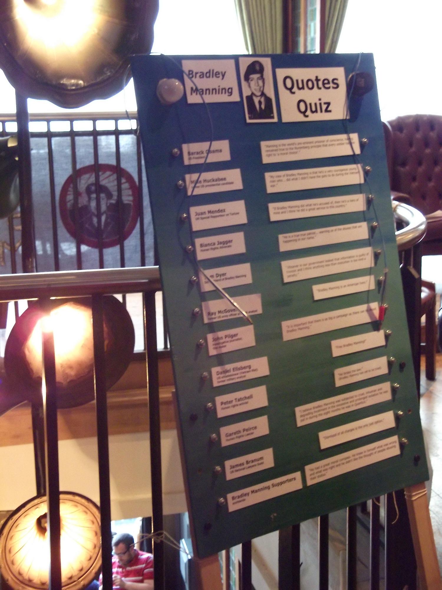 We've had a lot of conversations about Bradley Manning too, with people who already know his story and want to discuss his mistreatment to those who've never heard his name before. The exhibition includes a tape recording of Bradley Manning 'in his own words' containing extracts from the chat logs released by Adrian Lamo. For example: