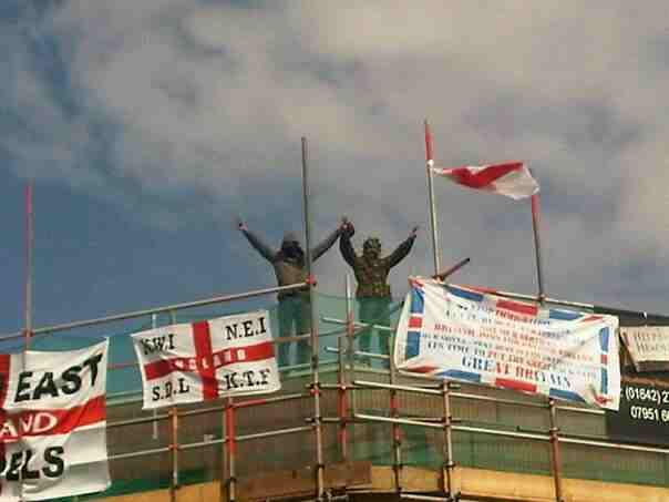 At the moment there is masses of police in Halifax town centre with police dogs and there is a police helicopter. There appears to be no liason with three NWI members that are involved in the stand off. A number of local pub drinkers have gathered near wards end to view the fiasco. At the moment there are only two anti fascists present that were out drinking in the town centre. There is a small group of fascists being contained in a nearby pub called the shakespear, the nazis have now been reduced to carrying out desperate activities due to their numbers constantly decreasing.
