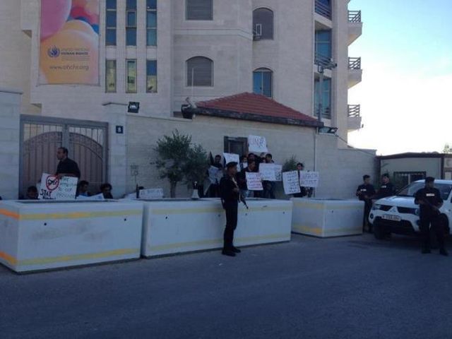 At 7:30 AM, about 25 youth activists reportedly blocked access into and out of the UN Ramallah Common Premises building. Later reports indicate upwards of 40 demonstrators involved in this morning’s action. A few minutes into the action, the hashtag #UNclosed began to trend worldwide on Twitter.