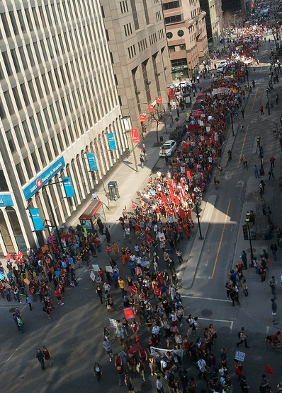 http://www.guardian.co.uk/world/2012/may/19/quebec-passes-student-protest-law "Opposition leader Pauline Marois from the Parti Quebecois called for Mr Charest to hold elections because of the law's unpopularity. Ms Marois said Friday was "one of the darkest days of Quebec democracy"... Gabriel Nadeau-Dubois, spokesman for Clase, a student group, called the law the "murder of the right to demonstrate"." -