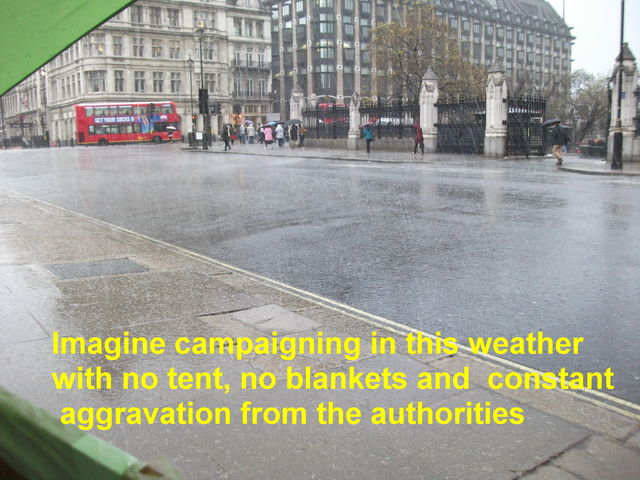 Nevertheless the campaign has continued with Australian born mother of two Mrs Barbara Tucker maintaining a 24 hour presence opposite the Houses of Parliament. She has been arrested a staggering 45 times in her six and a half years in the Square mainly on charges of `unauthorised demonstration` - some of the arrests have been without a warrant which of course is illegal. An attempt was made to have her sectioned under the mental health act which is reminiscent of Soviet times but the attempt was unsuccessful.