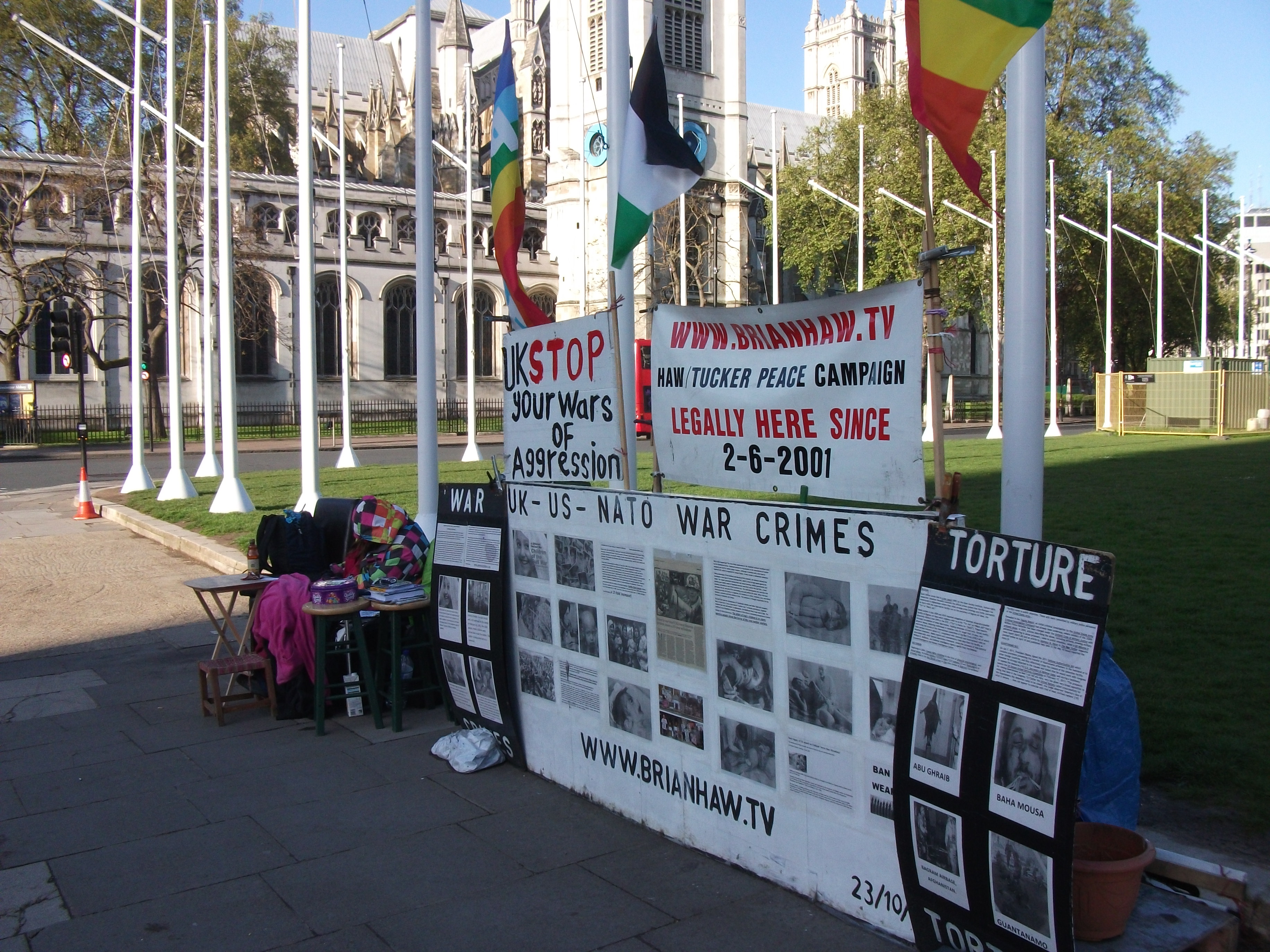 The peace campaign in London’s Parliament Square opposite the British Houses of Parliament reached 11 years on Saturday June 2nd 2012. Yes, 11 glorious years you might say.