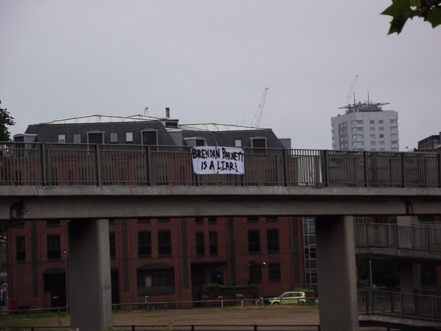http://www.indymedia.org.uk/en/2012/06/496784.html The pictures below show a banner-drop in Leeds and images of some of the many cards and other items sent to Barnett and his corrupt cohorts.