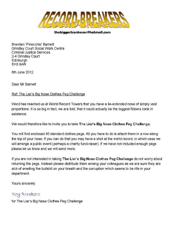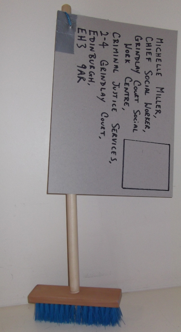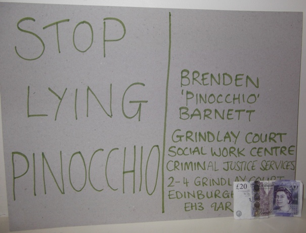 Brendan ‘Pinocchio’ Barnett, Grindlay Court Social Work Centre, Criminal Justice Services, 2-4 Grindlay Court, Edinburgh, EH3 9AR. (Telephone: 0131 469 3408 Fax 0131 229 8628