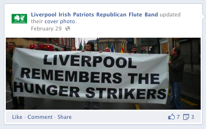 So, not only were all the people who said this wasn't an IRA march basically lying, they're also committing that most cardinal of sins when it comes to re-hashing the self-defeating martyr-complexes of religious Sectarianism and of extremist / fringe leftism - they're celebrating failure! As for the debate about whether march co-organisers the Liverpool Irish Patriots Republican Flute Band support the peace process, the name of the group that Phelan joined has since been adopted by a faction of the (anti-peace process) Real IRA. Phil Dickens' response to all this evidence is to ignore it, thereby pro-actively helping to guarantee the success of future Fascist mobilisations