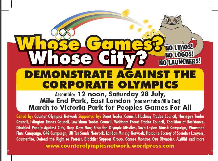 Anti-Olympic Friday 27th July protest 6pm South Bank under Waterloo Bridge