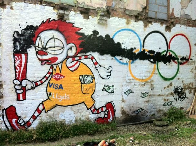 Across the world the Olympic infastructures have been raised on the bodies of workers who died in the race to complete these modern-day pyramids of Industrial Progress. Yes, make no mistake, it's these businessmen and contractors along with government beaurocrats and their security services (quick to use a lucractive opportunity to advance social control) who really benefit from this. Already globally synonymous with the surveillence society, London will host a showcase of the latest control technologies from the booming security and defence sector which feeds off post-9/11 and austerity-era insecurity. This is the bosses grand idea: to catalyse and secure projects of urban development, tourism and infastructure under the favourable conditions of a world-renowned market scheme. Much beyond a single event, the modern Olympics is an emblem of the system that brought it back to life.