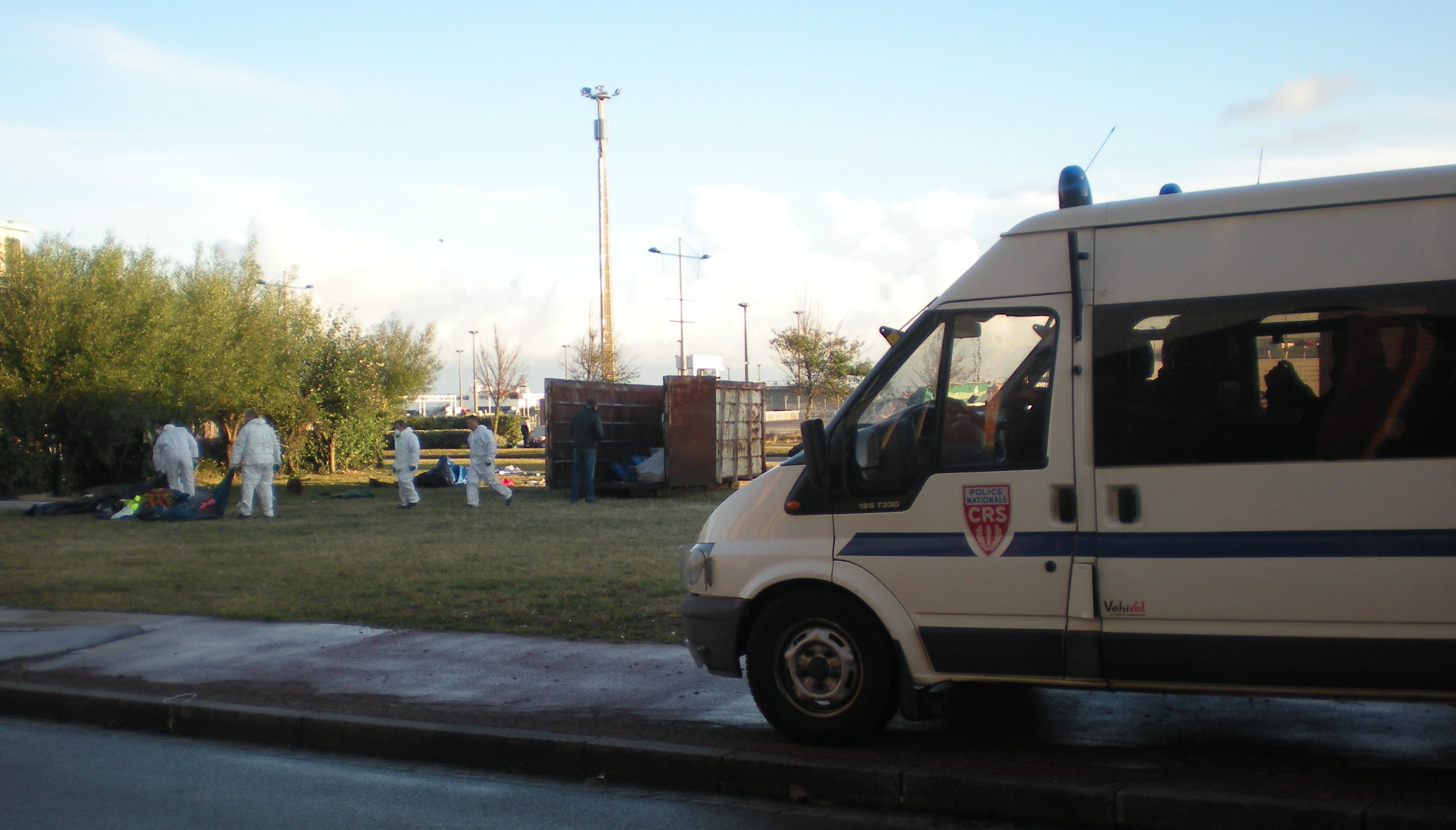 At 6am border police (PAF) and riot police (CRS) came in huge numbers to evict 'Salam', an area where many people have been sleeping since the summer. Throughout the eviction police refused to let people take with them their blankets and sleeping bags, many of which had distributed two days before by Medicine du Monde. Instead they bring in council workers - in boiler suits and dust masks like they're conducting pest control - to put everything in the dump.