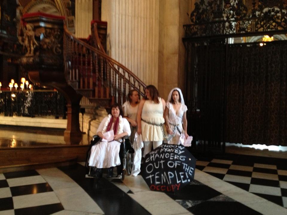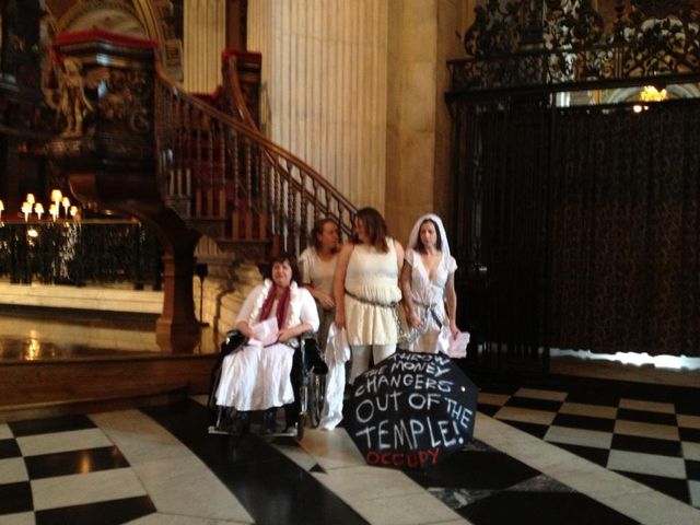 We stand here as Occupiers, as women, Queers, disabled, grandmas, young, old, as women of all faiths and none in solidarity with all other groups who are marginalised by economic injustice.