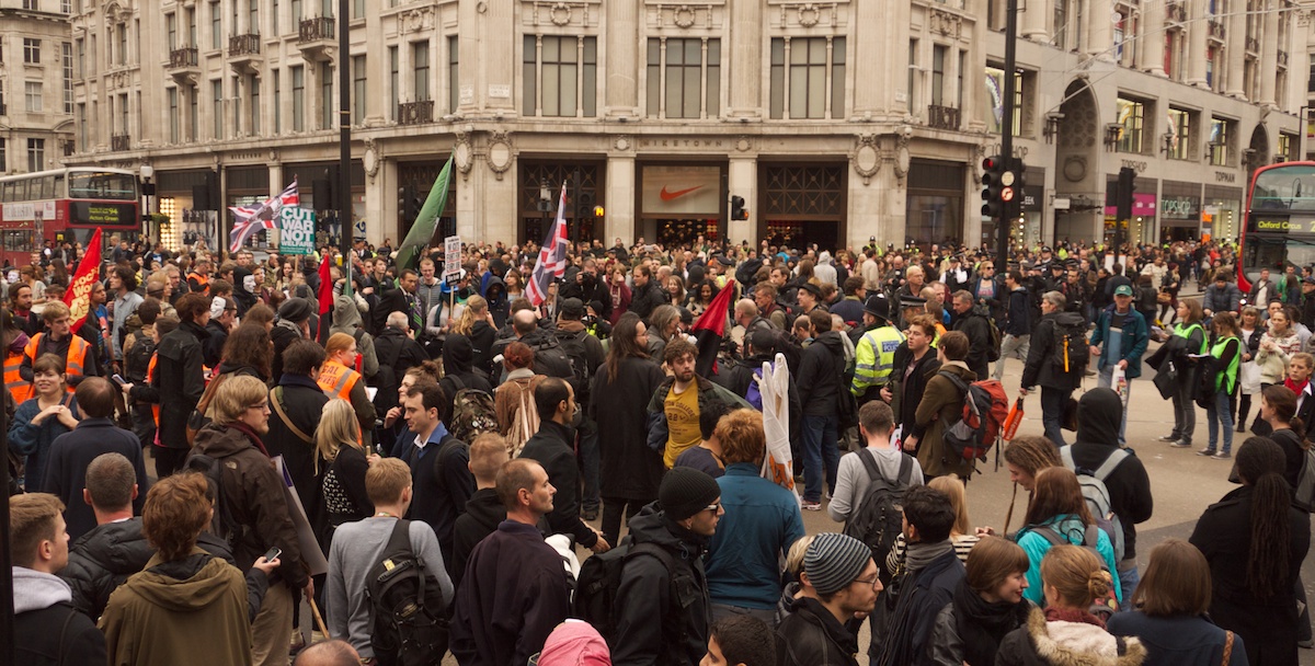 by about 1.30, the various libertarian groups had begun to leave the march, and they made their way up regent street in loose formation, flooding into oxford circus and briefly blocking traffic.