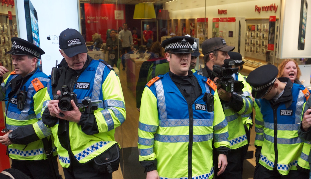 overall, i got the impression that police orders were to avoid arrests, tolerate roving oxford street protests without attempts to kettle, to collect as much intelligence and surveillance as possible, and to prevent any shops from being entered by activists.