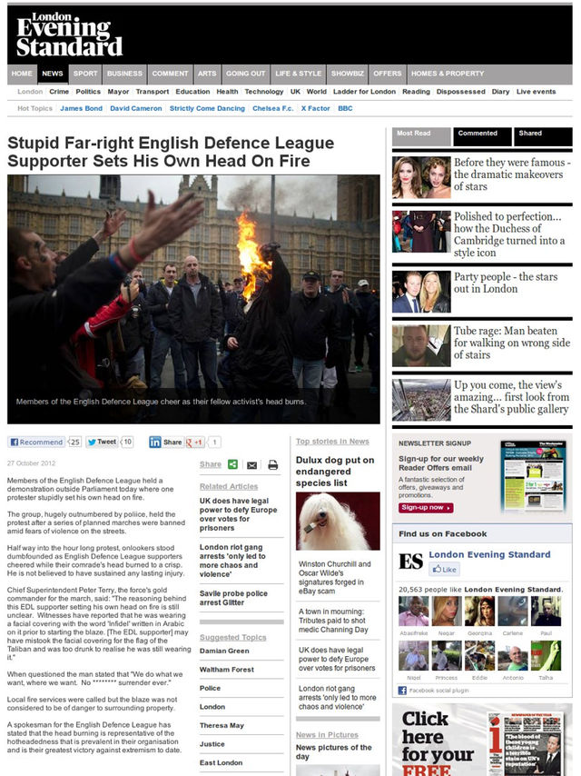 Nice bit of propaganda rhetoric drivel there mate. Every anti-EDL post on this site seems to have similar comments since the year dot. Sadly for you, i think you are wrong. It is more wishful thinking than fact on your behalf. If it really is a damp squib / faded out puff of smoke / flash in pan then why does it keep happening even through you keep saying this in your poists