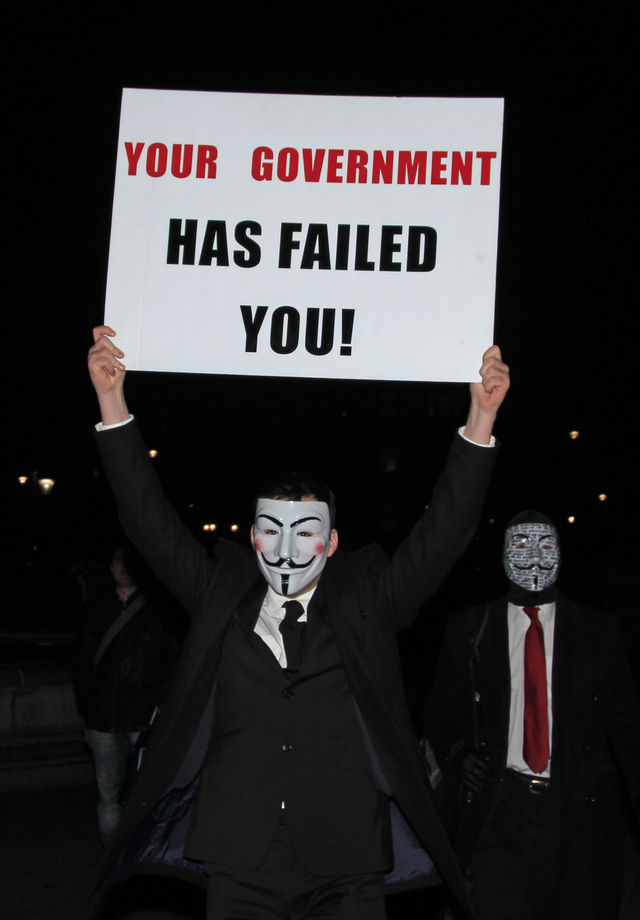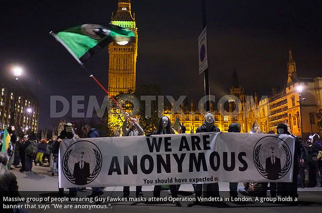 At 8pm on November 5th 2012, Anonymous will march on The Houses of Parliament peacefully and unarmed. This is the centrepiece of a worldwide Anonymous operation of global strength and solidarity, a warning to all governments worldwide that if they keep trying to censor, cut, imprison, or silence the free world or the free internet they will not be our governments for much longer.Change is coming