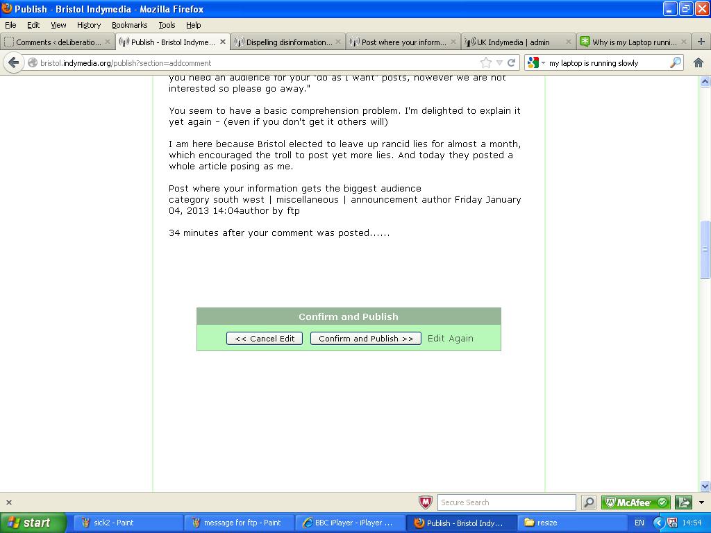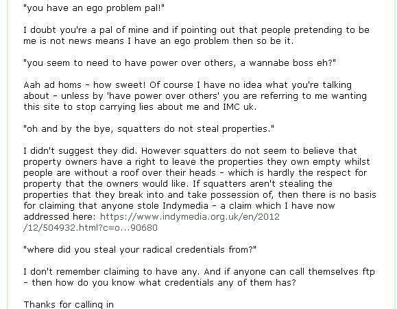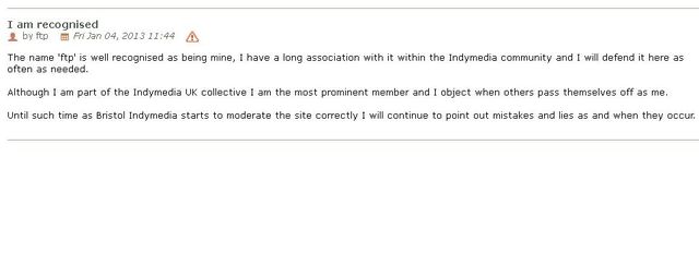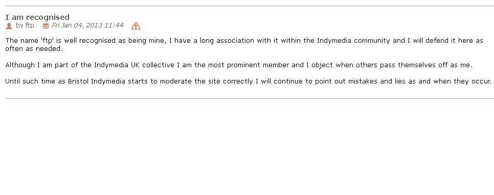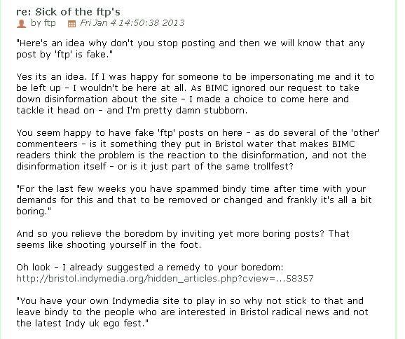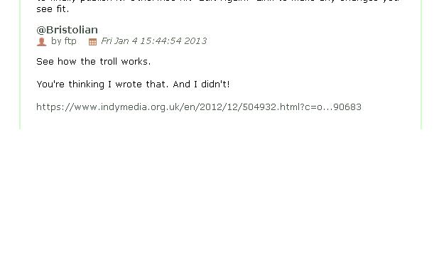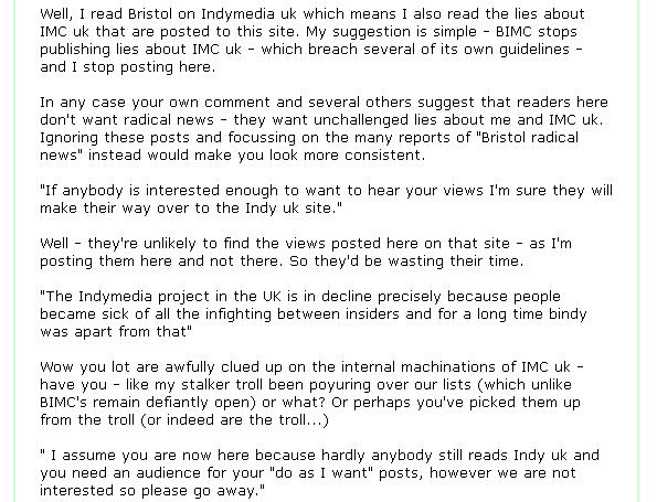 And for " Lots of Bristol people" - I'll 'fuck off' when this troll stops impersonating me on BIMC and stops using BIMC to spread lies about IMC uk