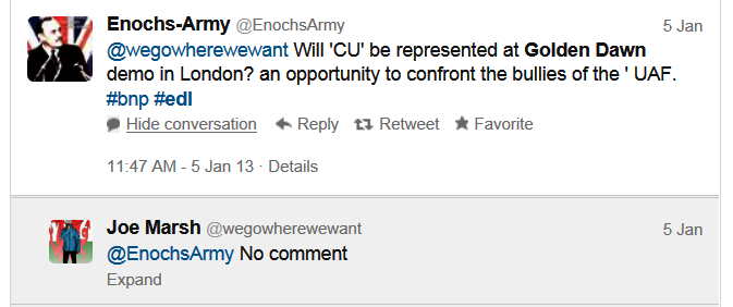 Jeff Marsh and his cowardly army of EDL supporting football thugs are planning to get violent in London against the UAF! As will Watmough and Liam Pinkham, NF, BNP and assorted neonazi rent-a-thugs...