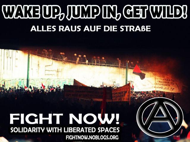 http://fightnow.noblogs.org/ Even though the recent onslaught of the Greek State against the anarchist/anti-authoritarian spectrum was the initial spark for writing this call, several examples around the globe show us that the police and municipal authorities along with giant corporations are cooperating excellently with each other, attacking solidarian structures and pacifying societies at a transnational level. During the past few weeks and months, in parts of the world, where people suffer from the systematic impoverishment and extended gentrification plans, it increasingly came to State/Capital’s attacks on radical movements, including repression against concrete forms of resistance such as land occupations, autonomous projects, company headquarters’ occupations, or strike actions. It thus deems important that we also connect our struggles worldwide, and fight back in the here and now. Action in response to attacks on squatted spaces at your location could be the spark for you. Take action on the streets and let your imagination run wild to spread the message of active resistance.