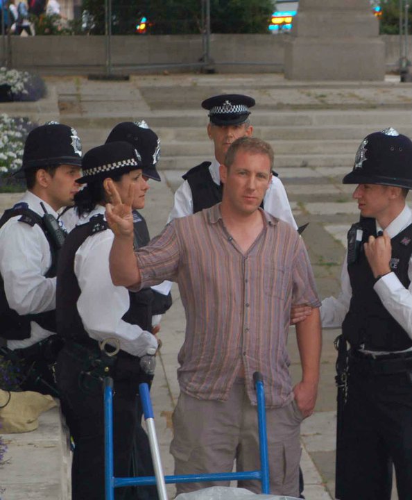DSEi 2001 - drove a van full of equipment for the WOMBLES action at DSEi exhibition on September 11th 2001, where he was arrested and the van's contents seized by the police.