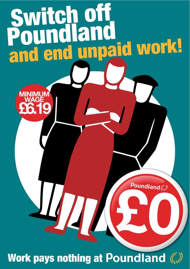 It is also a direct attack on Poundland’s workers and other workers - replacing paid jobs, holiday pay & ending temporary posts for students and others who rely on this type of work. We have heard complaints from Poundland staff who have had their hours cut, because of Workfare.