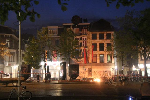 Up to about eleven o'clock the tension was so thick, you could cut it with a knife. Nobody knew what was going to happen, except three nervous nail biters on the terrace of a café on the Ganzenmarkt, the square on which the Ubica is situated, the place that offered the best view of the spectacle that is the Ubica eviction, last Friday. It seemed like such an ordinary Friday night for the beer drinkers on the Ganzenmarkt. Another workweek gone by, another night consumed away. Nothing's out of the ordinary, tomorrow is day like any other. But those three visitors knew better. They had heard that the squatters would not just give up their autonomous space after 21 years. "Not without a fight", was announced on Indymedia. But of course no time was specified so it came down to nail biting and suspenseful waiting. One thing was certain: in a little while the town hall would receive a make-over.