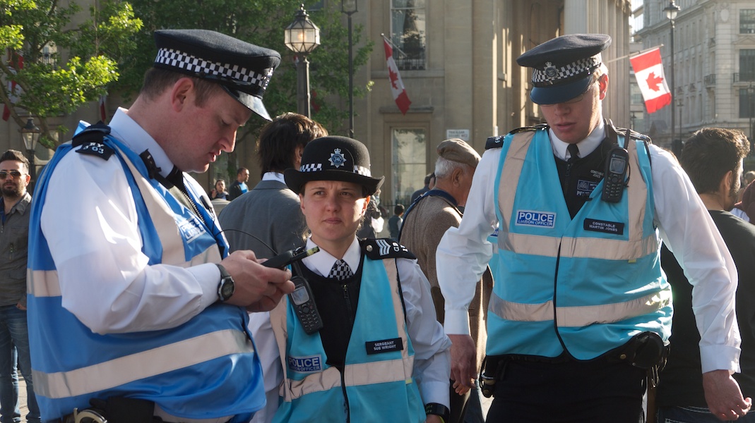 the baby-blue tabards of police liaison officers (PLOs) intruding among the crowd were, as always, an unwelcome sight. many of these officers are ex-forward intelligence operatives, and while appearing friendly they are frantically feeding back intelligence to gain control of the crowd, manipulate dynamics, and spot "trouble-makers".