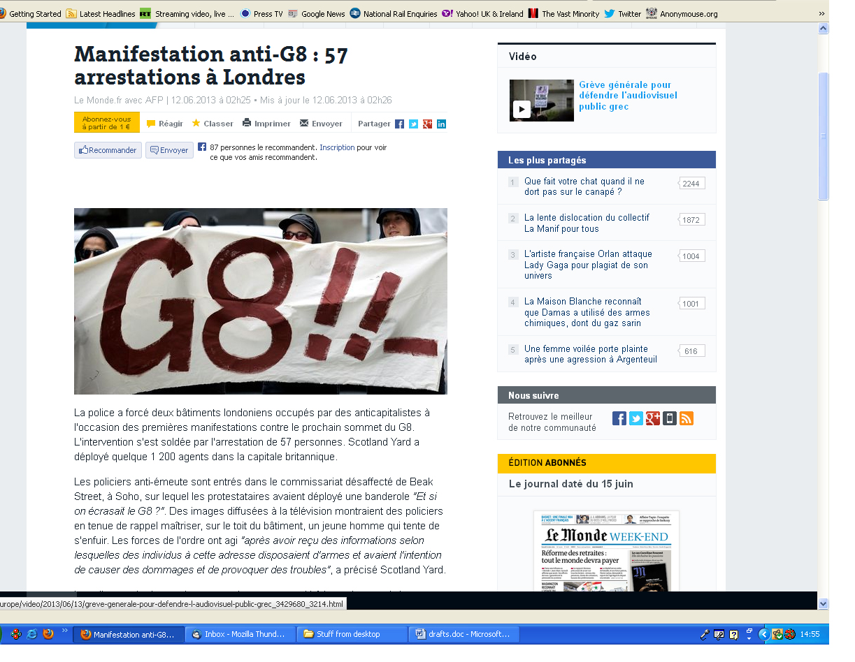 2) Some people tried to push discussions and analysis about the context for any mobilisation against the G8, yet they were largely ignored by a few people who seemed to have already decided that they knew what need to be done. Those people then left the group.