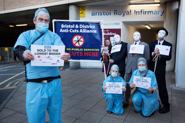 To succeed, BADACA needs to go back to its representative base a large part of which is local trade union branches and workplaces. You may scoff at the unions but in the Bristol area we have a network of tens of thousands. The NUT can distribute material on the NHS to its 5000 local members and other unions can distribute stuff on what is happening to schools. The emphasis has to be on winning the arguments: cuts are not inevitable; we don't have to "make sacrifices"; public is good and private bad; it is the fault of greedy bankers, not immigrants and "scroungers". At the moment, we are losing. I believe that BADACA has to be much looser - a genuinely representative federation of different organisations and campaigns supporting each other. Imagine the effect if we could mobilise a 100 or more people to be in Broadmead every Saturday for two months, in local shopping centres, outside hospitals and health centres with imaginative and accessible material and stunts to explain the consequences of what is happening to the NHS.
