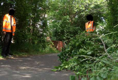 We cut back the trees and undergrowth around the street lights in the area around Clay Bottom so more light would reach the path during the night. So the cowards who choose to move in the shadows would no longer be able to hide there. To go some way to help members of our community see clearly in the dark and no longer be intimidated or feel afraid to be out at night in this area.