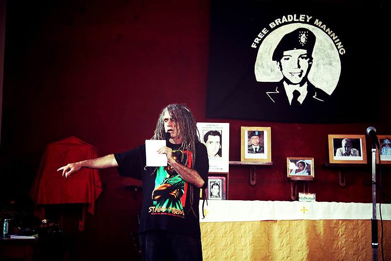 Throughout the past 2.5 years Catholic Worker, "Veterans for Peace in the U.K." & other new & old friends have been out on the streets, outside court & embassies in solidarity with Bradley Manning, Julian Assange and more recently Edward Snowden. We have undertaken this venture with minimal resources & personnel as more well funded anti-war organisations & NGO's embraced cowardice & cultivated ignorance averting their gaze from Manning & took the U.S./Guardian led default position on Julian. The August 4th event at Giuseppe Conlon was part wake for Bradley's youth on the streets, part a celebration of the motley crew that has traveled through his torture, character assassination, imprisonment.