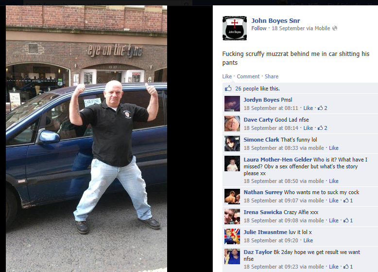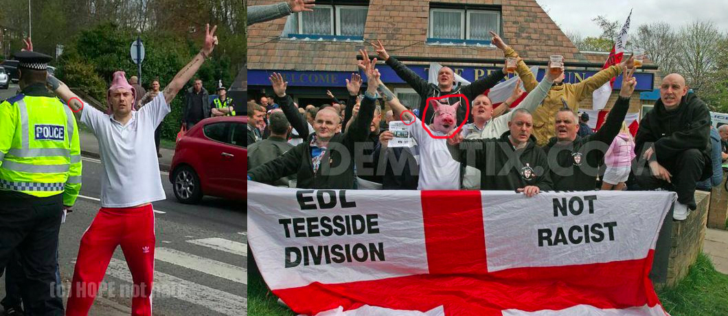 One of the photos shows Lee Patrick, a Sunderland nazi who wanted to 'gas all muslims' attend recent EDL demo's in Sunderland. Despite the EDL saying they don't like Nazis - they still let him attend their demos:-