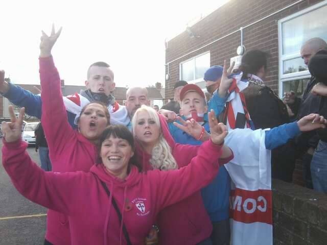 Another photo shows Sunderland EDL outside a bar alongside someone with a Skrewdriver T-shirt.