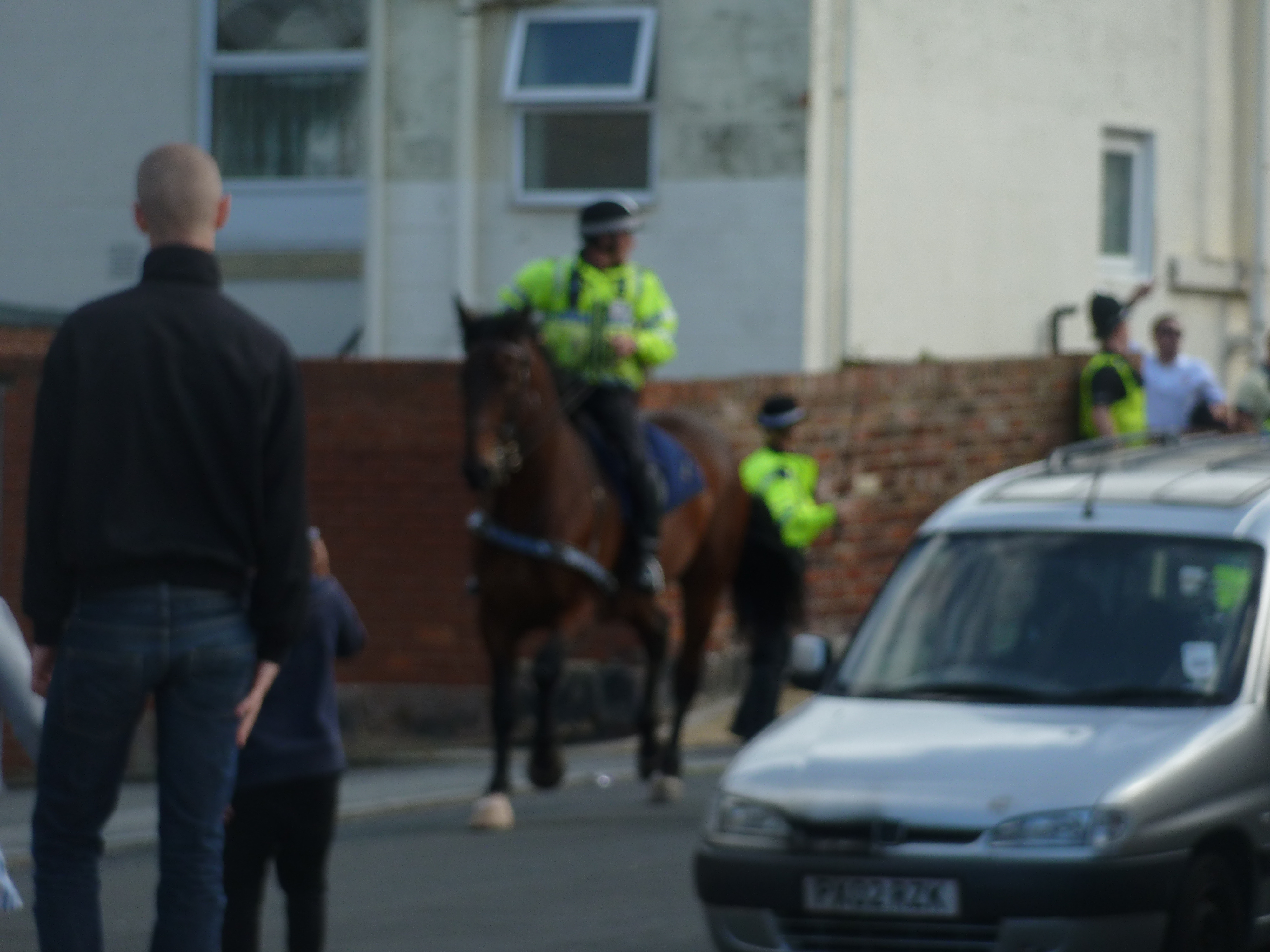 Scores of local people public were in the town centre and there were boos and jeers as about 200 police escorted the march from Mile End Road through Fowler Street to Beach Road and down Sea Road.