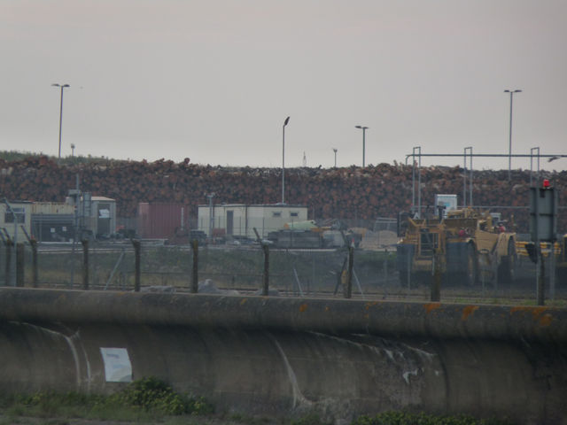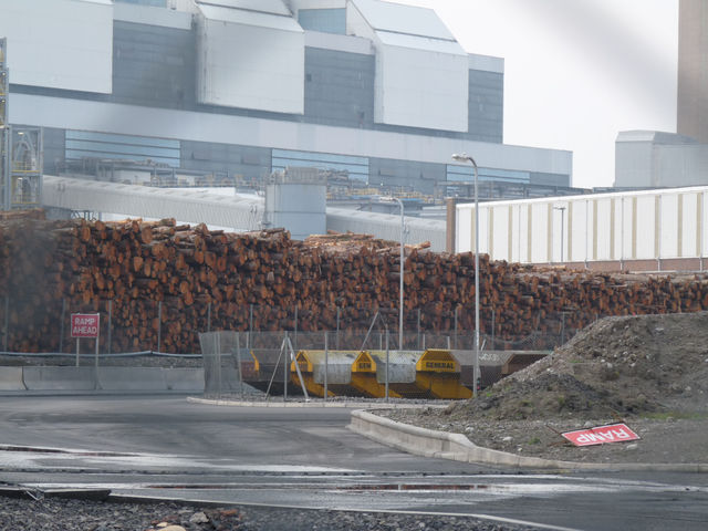 Not being ones to take this information at face value, we visited the site to see for ourselves (see pics) and sure enough there were stockpiles of thousands of felled trees at the power station which can clearly be seen from outside the perimeter fence - the security at the station noticed us almost straight away and spent the next hour or so following us in their car - at least they didn't try and take our camera!