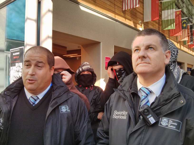 At around 7pm last night, Sheffield Autonomous Students, Sheffield RevSoc and the Sheffield campaign for a Living Wage Now united to occupy the Richard Robert’s Building at University of Sheffield. Our plan was and remains to support striking staff members at the university, prevent strike breaking and show other students that we can unite and support workers who face attacks from the same management that made the decision to implement £9,000 fees whilst making cuts to academic funding. We entered easily, with no resistance from security or management. We hung banners so that people outside knew what was happening and waited for any rooms being used to empty. We quickly settled and security agreed that we could stay if some security guards stayed with us. We held a consensus meeting, discussing rumours that management were going to come to speak to us (they never did) and the support we’d had from people who work in Higher Education. We also passed a safer spaces policy as a group, so that everyone could relax in the occupation and feel supported in raising issues in the event of encountering sexist, racist, ableist or LGBTphobic behaviour.