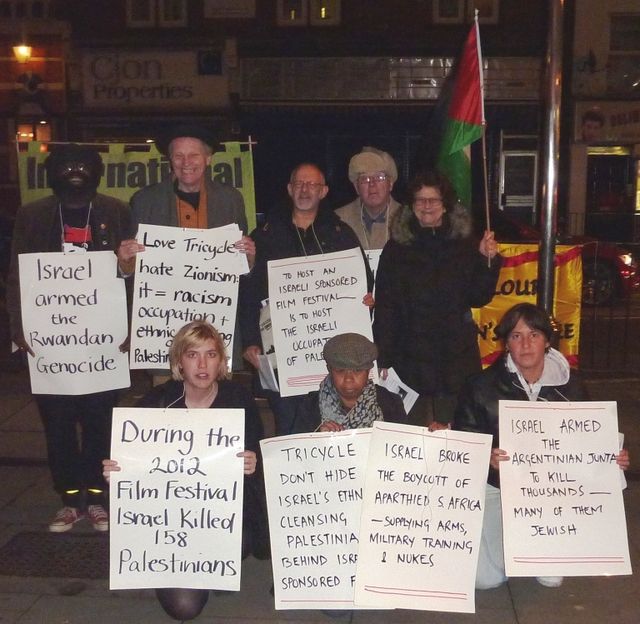 Protestors, who have valued the Tricycle for decades through its vitally informative and entertaining plays about Afghanistan, Ireland’s Bloody Sunday, US Guantanamo, the Stephen Lawrence Inquiry, and more, are appalled at the Tricycle hosting a film festival sponsored by a government that whose major industry is repression, not only of Palestinians but around the world.