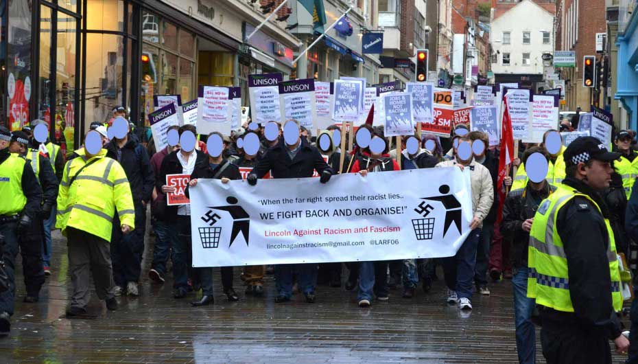 Also the main organiser of the Lincoln Against Racism and Fascism march received numerous death threats saying ‘if he showed his face in Lincoln today, he would be a dead man’. As far as we are aware he led the march, addressed the crowd through a megaphone, talked to the media and lived to tell the tale.