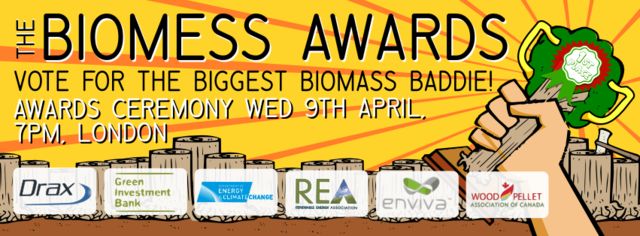http://www.biofuelwatch.org.uk/biomess-awards/ This Alternative Awards Ceremony is part of a month of events which put the spotlight on the destructive biomass industry. Visit our website for more information on what else is going on in April, including a demonstration outside the Drax AGM on 23rd April.