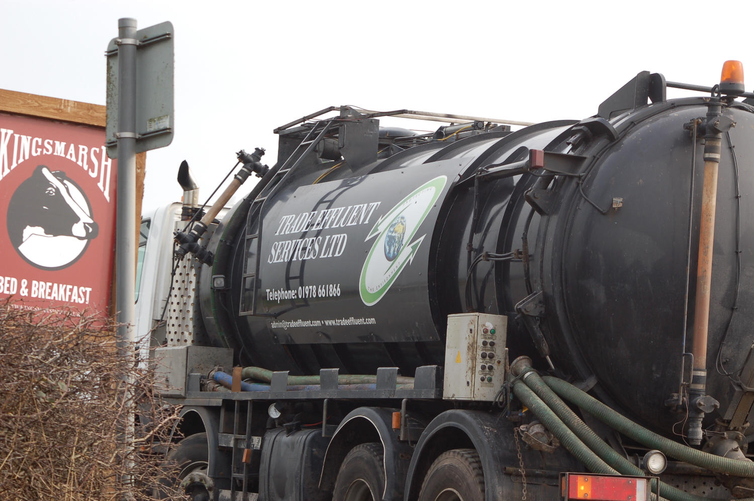 Halfway up the lane, I stopped to take some more photographs, at which point a long truck turned out of the site gate and headed down the lane towards me. I waited until it was close, made sure the driver had seen me, turned and walked slowly in front of it all the way to the end of the lane. A red flag might have been in order but I didn't have one. I was on my own so there wouldn't have been any witnesses if the truck had mown me down but I guessed - fortunately correctly - that the driver wouldn't want a dead pedestrian on his conscience. We eventually reached the end of the lane and I stepped aside to let him exit onto the main road and to take a few photos. The vehicle was owned by McBride Haulage of North Yorkshire. Another truck had followed the first down the lane from the site, this one owned by Trade Effluent Services of Wrexham. I watched while it left the lane, then turned back towards the drilling.