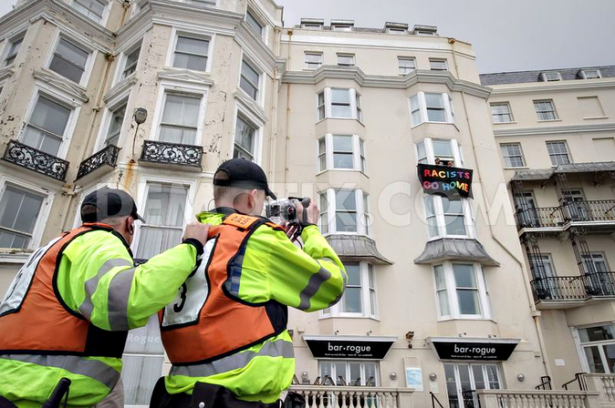 When MfE left the pub it became apparent that they hadn't mustered more than about 70 boneheads – though no doubt there were more skulking elsewhere. Sussex plod had lent on 'Spoons to stay open for the racists, though given that they can't be much of a money spinner with numbers so low I wonder if pressure could be applied in the other direction to encourage them to refuse?